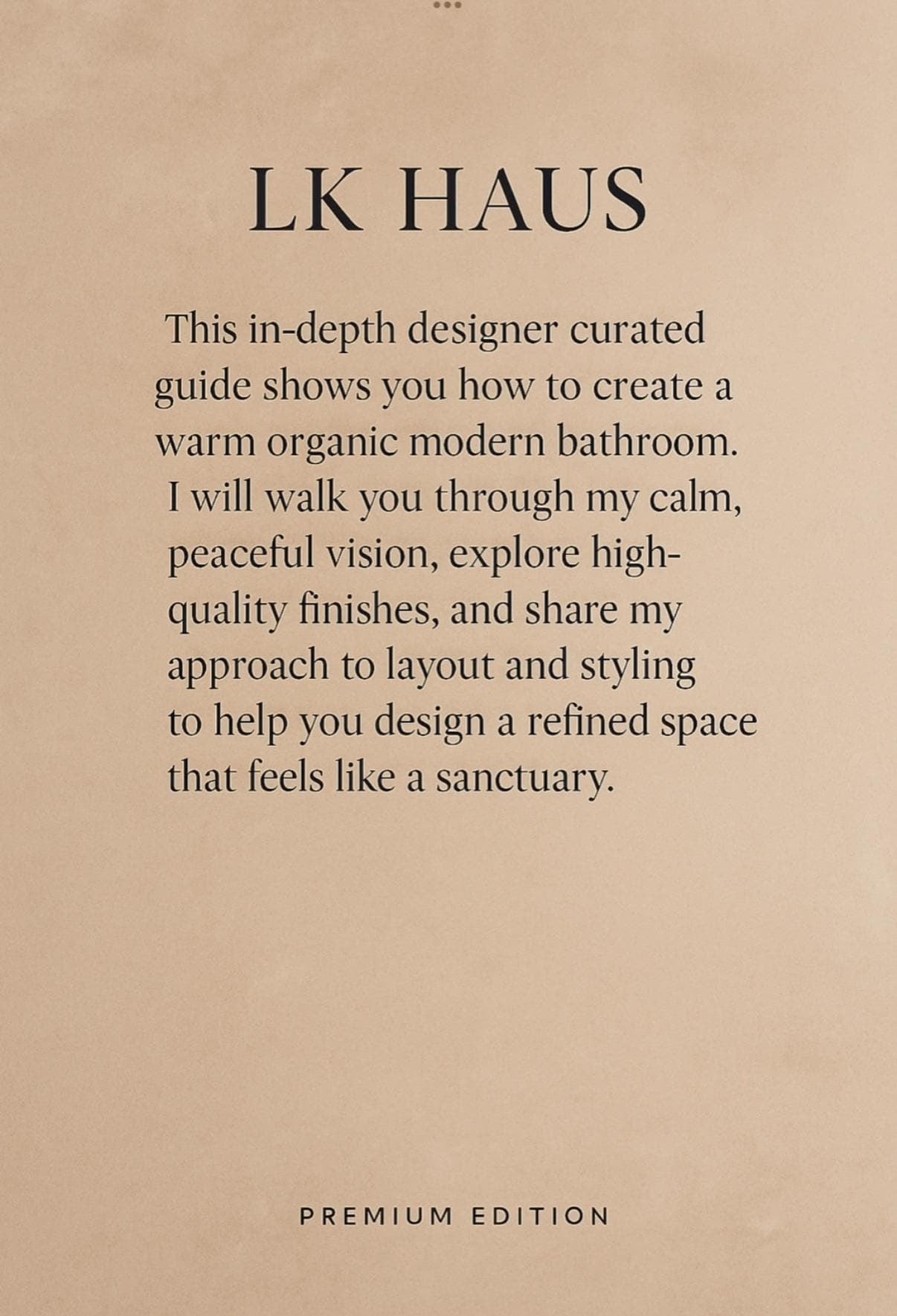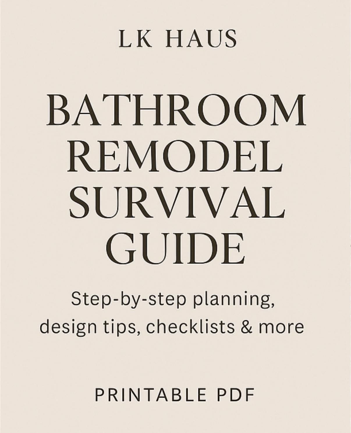 The LK Haus Bathroom Remodel Survival Guide is a thoughtfully designed digital PDF that walks you step by step through planning, layout, materials and finishes so your bathroom remodel feels intentional, elevated and cohesive from start to finish. This is not a generic checklist. It's a designer's framework for homeowners who want a warm, organic modern bathroom that feels serene, functional and beautifully put together.